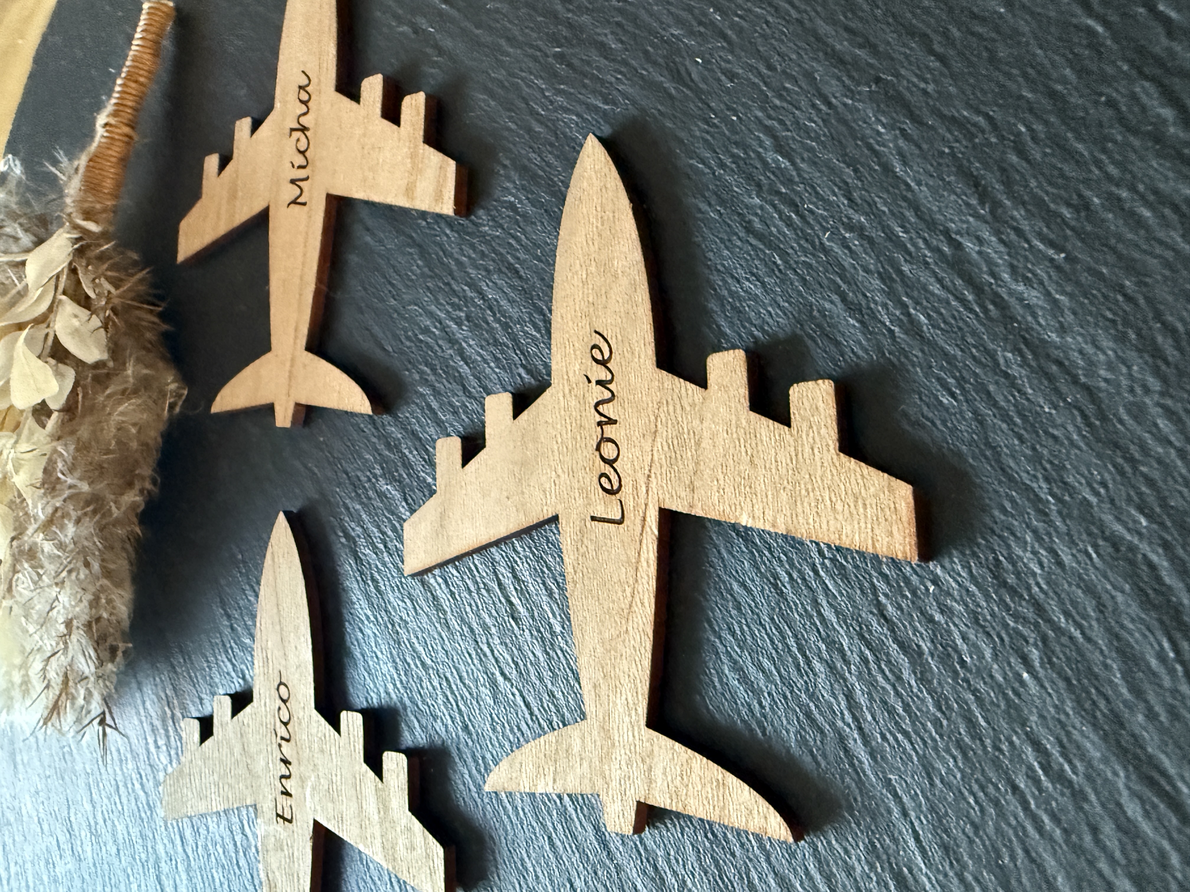 FLUGZEUG AUS HOLZ MIT NAMEN