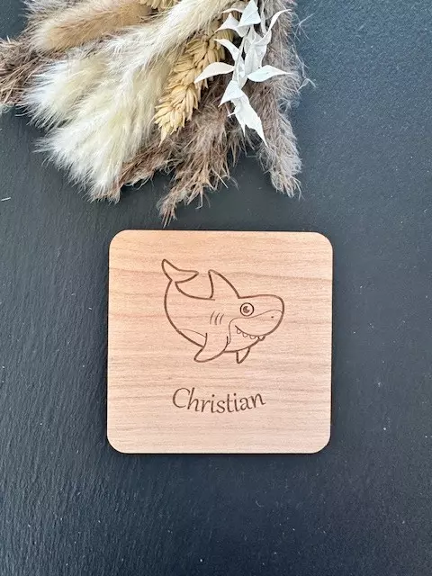 Wir bieten Getränkeuntersetzer aus Holz mit individuellem Namen graviert