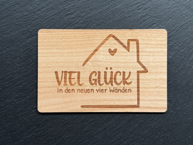 Holzkarte: „ Viel Glück in den neuen vier Wänden“